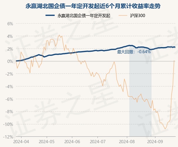证券之星消息,9月26日,永赢湖北国企债一年定开发起最新单位净值为1.0534元,累计净值为1.0687元,较前一交易日下跌0.06%。历史数据显示该基金近1个月上涨0.2%,近3个月上涨0.59%,近6个月上涨2.19%,近1年上涨5.02%。该基金近6个月的累计收益率走势如下图: