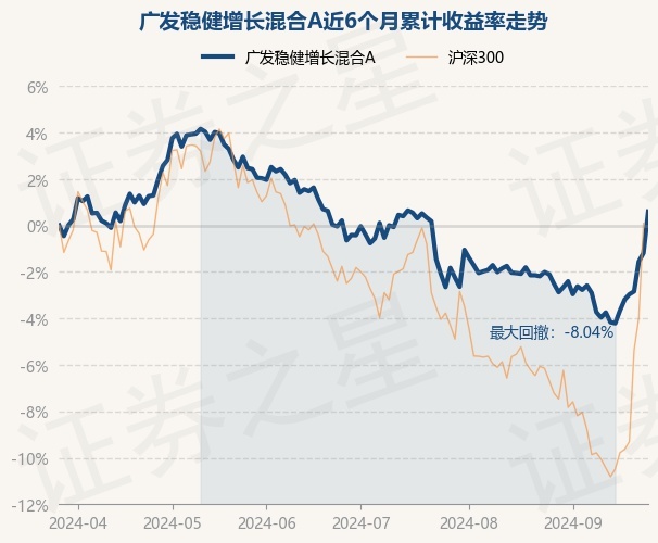 证券之星消息,9月26日,广发稳健增长混合A最新单位净值为1.4592元,累计净值为4.5192元,较前一交易日上涨1.81%。历史数据显示该基金近1个月上涨2.76%,近3个月上涨0.39%,近6个月上涨0.6%,近1年下跌3.15%。该基金近6个月的累计收益率走势如下图: