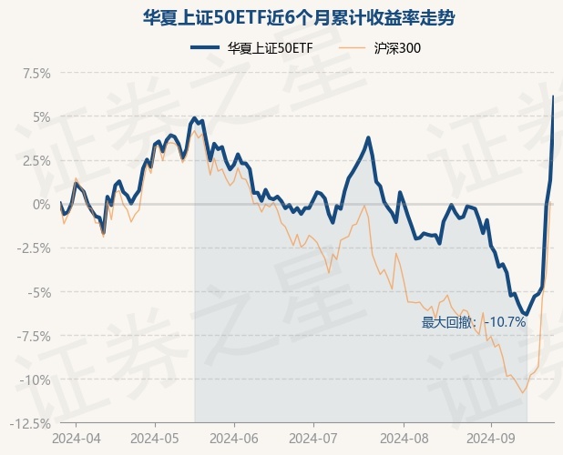 证券之星消息,9月26日,华夏上证50ETF最新单位净值为2.597元,累计净值为3.8581元,较前一交易日上涨4.68%。历史数据显示该基金近1个月上涨6.31%,近3个月上涨6.34%,近6个月上涨6.07%,近1年上涨1.82%。该基金近6个月的累计收益率走势如下图:
