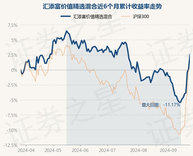 证券之星消息,9月26日,汇添富价值精选混合最新单位净值为2.457元,累计净值为4.154元,较前一交易日上涨2.33%。历史数据显示该基金近1个月上涨2.5%,近3个月下跌0.85%,近6个月上涨2.55%,近1年上涨0.78%。该基金近6个月的累计收益率走势如下图: