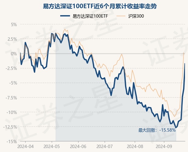 证券之星消息,9月26日,易方达深证100ETF最新单位净值为2.4306元,累计净值为4.7296元,较前一交易日上涨4.54%。历史数据显示该基金近1个月上涨9.55%,近3个月上涨1.21%,近6个月下跌1.8%,近1年下跌7.79%。该基金近6个月的累计收益率走势如下图: