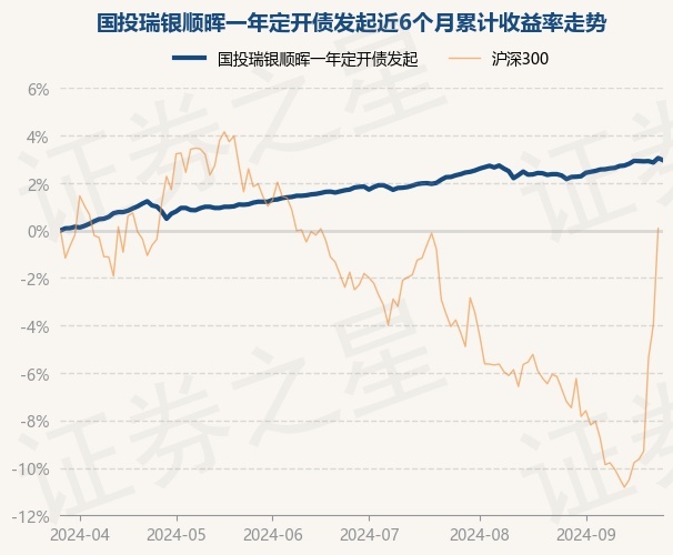 证券之星消息,9月26日,国投瑞银顺晖一年定开债发起最新单位净值为1.0484元,累计净值为1.0827元,较前一交易日下跌0.09%。历史数据显示该基金近1个月上涨0.63%,近3个月上涨1.22%,近6个月上涨2.96%,近1年上涨5.44%。该基金近6个月的累计收益率走势如下图: