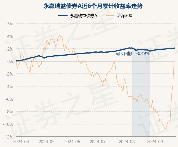 证券之星消息,9月26日,永赢瑞益债券A最新单位净值为1.1093元,累计净值为1.373元,较前一交易日下跌0.05%。历史数据显示该基金近1个月上涨0.32%,近3个月上涨0.66%,近6个月上涨2.02%,近1年上涨4.41%。该基金近6个月的累计收益率走势如下图: