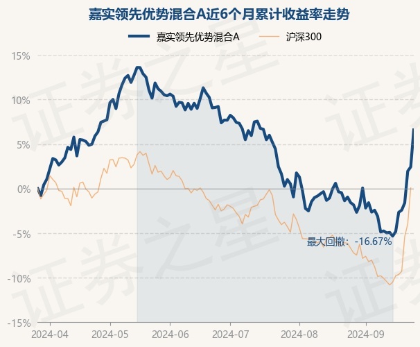 证券之星消息,9月26日,嘉实领先优势混合A最新单位净值为0.8698元,累计净值为0.8698元,较前一交易日上涨4.06%。历史数据显示该基金近1个月上涨8.29%,近3个月下跌2.41%,近6个月上涨6.59%,近1年上涨2.5%。该基金近6个月的累计收益率走势如下图: