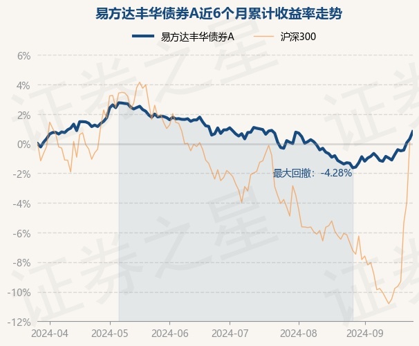 证券之星消息,9月26日,易方达丰华债券A最新单位净值为1.2689元,累计净值为1.4815元,较前一交易日上涨0.49%。历史数据显示该基金近1个月上涨2.17%,近3个月下跌0.24%,近6个月上涨0.82%,近1年上涨1.54%。该基金近6个月的累计收益率走势如下图: