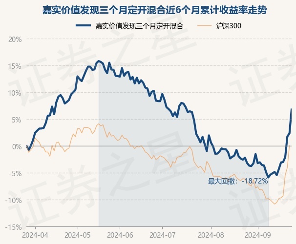 证券之星消息,9月26日,嘉实价值发现三个月定开混合最新单位净值为0.9271元,累计净值为1.025元,较前一交易日上涨4.33%。历史数据显示该基金近1个月上涨10.28%,近3个月下跌3.16%,近6个月上涨6.8%,近1年下跌1.01%。该基金近6个月的累计收益率走势如下图: