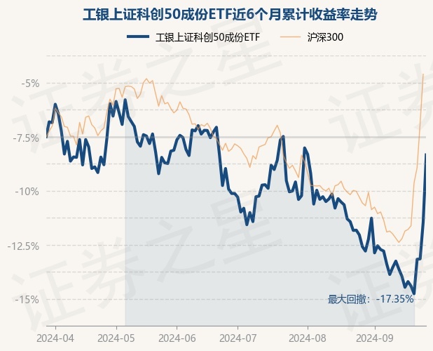 证券之星消息,9月27日,工银上证科创50成份ETF最新单位净值为0.7624元,累计净值为0.5313元,较前一交易日上涨6.73%。历史数据显示该基金近1个月上涨9.45%,近3个月上涨3.32%,近6个月下跌1.68%,近1年下跌16.03%。该基金近6个月的累计收益率走势如下图: