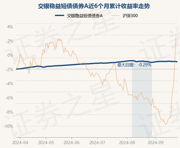 证券之星消息,9月27日,交银稳益短债债券A最新单位净值为1.0253元,累计净值为1.0523元,较前一交易日下跌0.1%。历史数据显示该基金近1个月上涨0.05%,近3个月上涨0.24%,近6个月上涨1.24%,近1年上涨2.98%。该基金近6个月的累计收益率走势如下图: