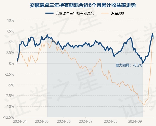 证券之星消息,9月27日,交银瑞卓三年持有期混合最新单位净值为0.8856元,累计净值为0.8856元,较前一交易日下跌1.13%。历史数据显示该基金近1个月下跌0.25%,近3个月上涨1.78%,近6个月上涨5.63%,近1年上涨2.03%。该基金近6个月的累计收益率走势如下图: