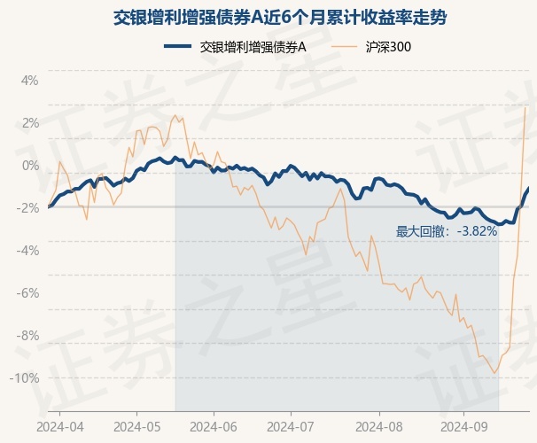 证券之星消息,9月27日,交银增利增强债券A最新单位净值为1.1884元,累计净值为1.5664元,较前一交易日上涨0.34%。历史数据显示该基金近1个月上涨1.71%,近3个月下跌0.68%,近6个月上涨1.05%,近1年上涨0.62%。该基金近6个月的累计收益率走势如下图:
