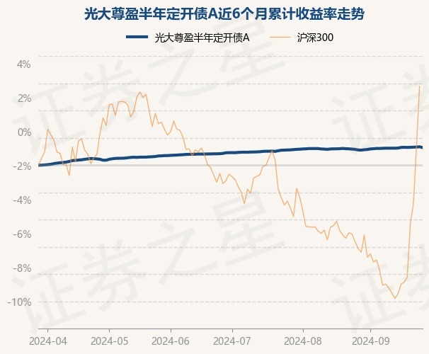 光大尊盈半年定开债A为债券型-混合一级基金,根据最新一期基金季报显示,该基金资产配置:无股票类资产,债券占净值比109.34%,现金占净值比0.54%。