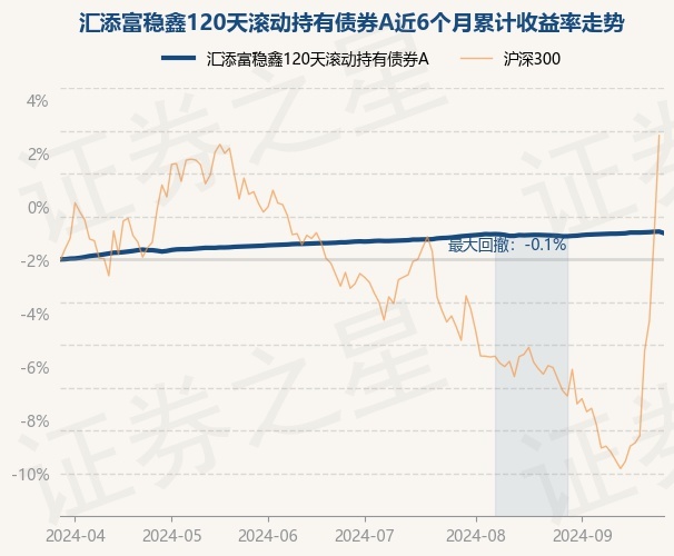 证券之星消息,9月27日,汇添富稳鑫120天滚动持有债券A最新单位净值为1.105元,累计净值为1.105元,较前一交易日下跌0.07%。历史数据显示该基金近1个月上涨0.15%,近3个月上涨0.41%,近6个月上涨1.23%,近1年上涨3.45%。该基金近6个月的累计收益率走势如下图:
