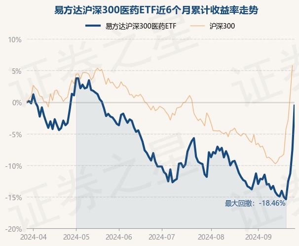 证券之星消息,9月27日,易方达沪深300医药ETF最新单位净值为0.3613元,累计净值为1.4452元,较前一交易日上涨7.5%。历史数据显示该基金近1个月上涨14.99%,近3个月上涨9.82%,近6个月下跌0.55%,近1年下跌16.21%。该基金近6个月的累计收益率走势如下图: