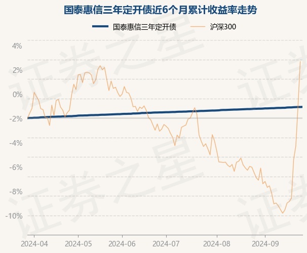证券之星消息,9月27日,国泰惠信三年定开债最新单位净值为1.0026元,累计净值为1.1315元,较前一交易日上涨0.01%。历史数据显示该基金近1个月上涨0.19%,近3个月上涨0.56%,近6个月上涨1.14%,近1年上涨2.39%。该基金近6个月的累计收益率走势如下图: