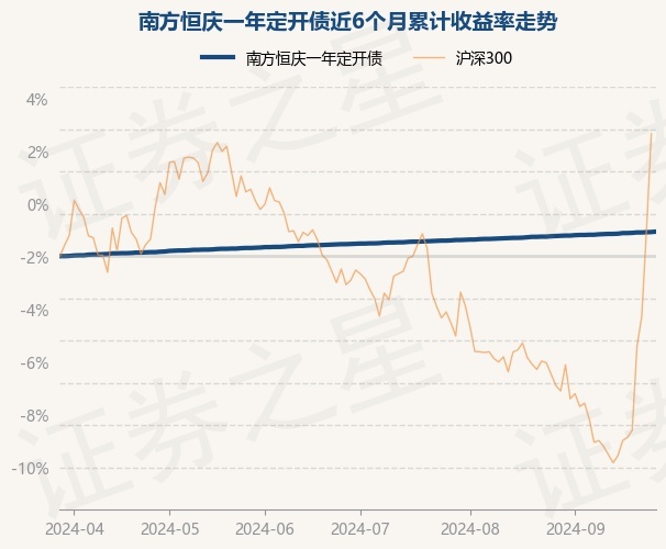 证券之星消息,9月27日,南方恒庆一年定开债最新单位净值为1.0194元,累计净值为1.1021元,较前一交易日上涨0.02%。历史数据显示该基金近1个月上涨0.21%,近3个月上涨0.59%,近6个月上涨1.16%,近1年上涨2.4%。该基金近6个月的累计收益率走势如下图: