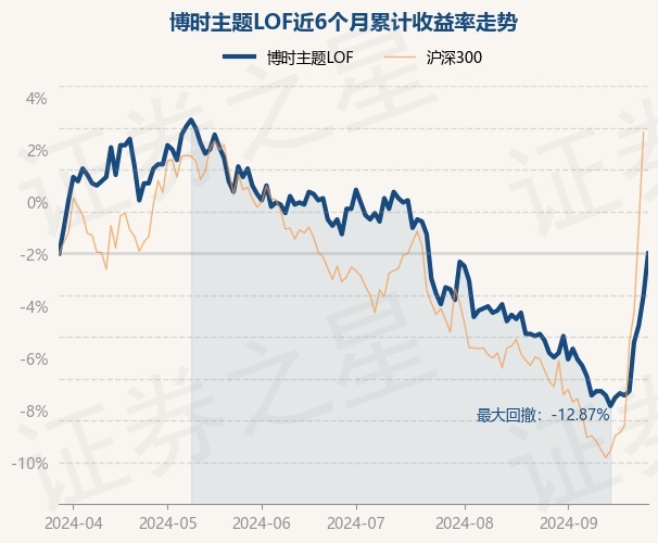 证券之星消息,9月27日,博时主题LOF最新单位净值为0.986元,累计净值为5.681元,较前一交易日上涨2.07%。历史数据显示该基金近1个月上涨5.01%,近3个月下跌0.9%,近6个月上涨0.0%,近1年下跌7.42%。该基金近6个月的累计收益率走势如下图: