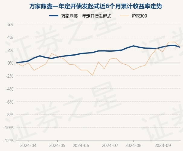 证券之星消息,9月27日,万家鼎鑫一年定开债发起式最新单位净值为1.0371元,累计净值为1.1063元,较前一交易日下跌0.28%。历史数据显示该基金近1个月上涨0.16%,近3个月上涨0.82%,近6个月上涨2.39%,近1年上涨4.82%。该基金近6个月的累计收益率走势如下图: