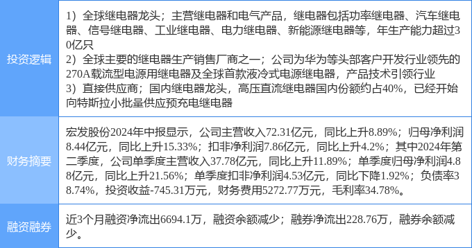 证券之星消息,宏发股份9月30日涨停收盘,收盘价32.55元。该股于9点33分涨停,19次打开涨停,截止收盘封单资金为185.18万元,占其流通市值0.01%。