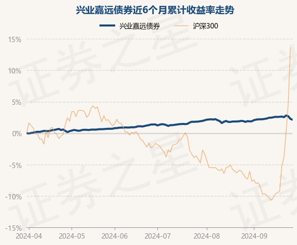 证券之星消息,9月30日,兴业嘉远债券最新单位净值为1.0196元,累计净值为1.0456元,较前一交易日下跌0.13%。历史数据显示该基金近1个月上涨0.25%,近3个月上涨0.74%,近6个月上涨2.14%,近1年上涨4.45%。该基金近6个月的累计收益率走势如下图:
