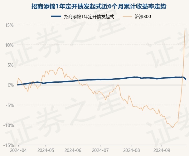 证券之星消息,9月30日,招商添锦1年定开债发起式最新单位净值为1.0462元,累计净值为1.1257元,较前一交易日下跌0.32%。历史数据显示该基金近1个月下跌0.29%,近3个月下跌0.06%,近6个月上涨1.29%,近1年上涨3.5%。该基金近6个月的累计收益率走势如下图: