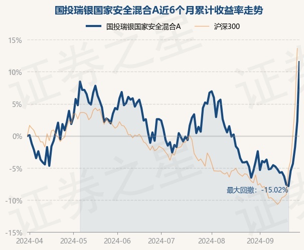 证券之星消息,9月30日,国投瑞银国家安全混合A最新单位净值为1.027元,累计净值为1.186元,较前一交易日上涨9.02%。历史数据显示该基金近1个月上涨14.24%,近3个月上涨8.68%,近6个月上涨11.51%,近1年下跌0.19%。该基金近6个月的累计收益率走势如下图: