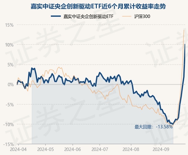 证券之星消息,9月30日,嘉实中证央企创新驱动ETF最新单位净值为1.5308元,累计净值为1.5308元,较前一交易日上涨7.98%。历史数据显示该基金近1个月上涨15.14%,近3个月上涨7.82%,近6个月上涨9.96%,近1年上涨13.53%。该基金近6个月的累计收益率走势如下图: