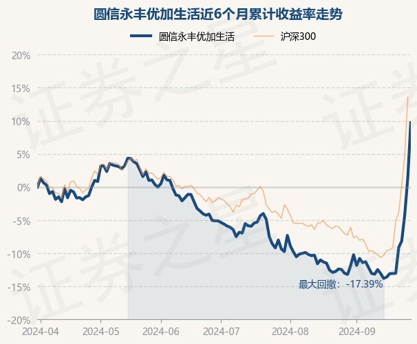 证券之星消息,9月30日,圆信永丰优加生活最新单位净值为3.1491元,累计净值为3.1491元,较前一交易日上涨8.23%。历史数据显示该基金近1个月上涨22.22%,近3个月上涨15.64%,近6个月上涨9.73%,近1年上涨3.46%。该基金近6个月的累计收益率走势如下图: