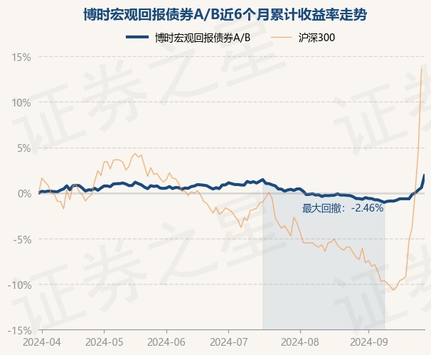 证券之星消息,9月30日,博时宏观回报债券A/B最新单位净值为1.4319元,累计净值为1.5999元,较前一交易日上涨1.31%。历史数据显示该基金近1个月上涨2.43%,近3个月上涨1.02%,近6个月上涨1.91%,近1年上涨1.92%。该基金近6个月的累计收益率走势如下图:
