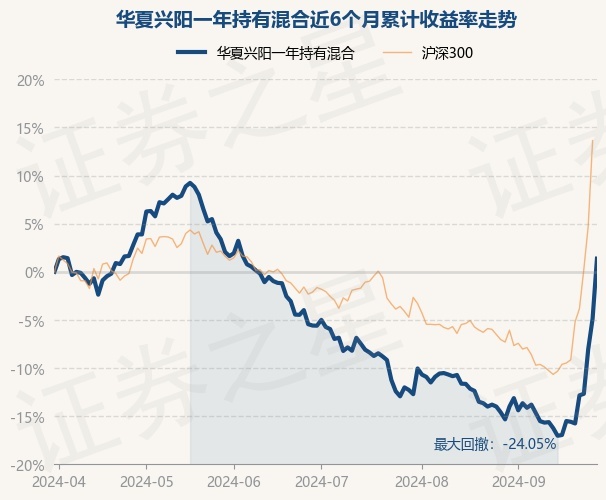 证券之星消息,9月30日,华夏兴阳一年持有混合最新单位净值为0.8092元,累计净值为0.8092元,较前一交易日上涨6.56%。历史数据显示该基金近1个月上涨16.68%,近3个月上涨7.38%,近6个月上涨1.37%,近1年下跌5.94%。该基金近6个月的累计收益率走势如下图: