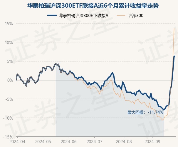 证券之星消息,9月30日,华泰柏瑞沪深300ETF联接A最新单位净值为0.9839元,累计净值为1.8969元,较前一交易日上涨0.0%。历史数据显示该基金近1个月上涨18.33%,近3个月上涨15.29%,近6个月上涨14.12%,近1年上涨9.64%。该基金近6个月的累计收益率走势如下图: