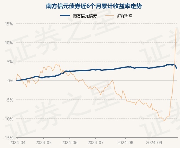 证券之星消息,9月30日,南方信元债券最新单位净值为1.0538元,累计净值为1.1元,较前一交易日下跌0.43%。历史数据显示该基金近1个月下跌0.24%,近3个月上涨0.18%,近6个月上涨3.08%,近1年上涨5.88%。该基金近6个月的累计收益率走势如下图:
