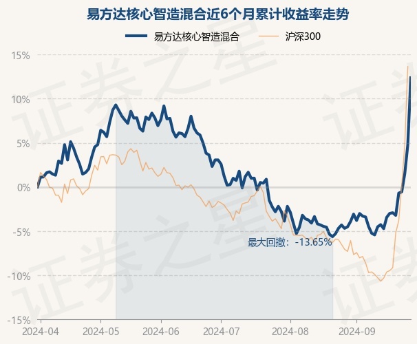 证券之星消息,9月30日,易方达核心智造混合最新单位净值为0.9093元,累计净值为0.9093元,较前一交易日上涨7.25%。历史数据显示该基金近1个月上涨15.94%,近3个月上涨9.03%,近6个月上涨12.37%,近1年上涨17.18%。该基金近6个月的累计收益率走势如下图: