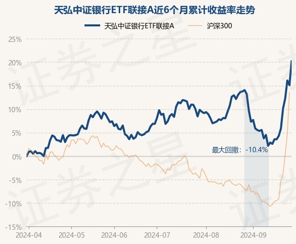 证券之星消息,9月30日,天弘中证银行ETF联接A最新单位净值为1.5371元,累计净值为1.5371元,较前一交易日上涨4.42%。历史数据显示该基金近1个月上涨11.97%,近3个月上涨12.44%,近6个月上涨20.17%,近1年上涨23.91%。该基金近6个月的累计收益率走势如下图: