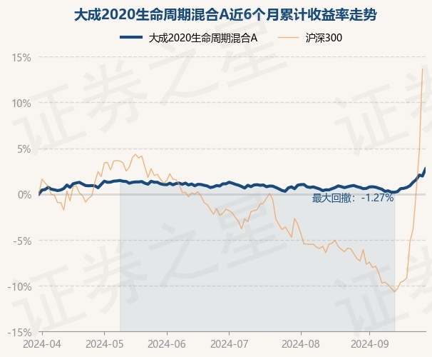 证券之星消息,9月30日,大成2020生命周期混合A最新单位净值为0.9557元,累计净值为2.7777元,较前一交易日上涨0.76%。历史数据显示该基金近1个月上涨2.12%,近3个月上涨1.61%,近6个月上涨2.74%,近1年上涨4.56%。该基金近6个月的累计收益率走势如下图: