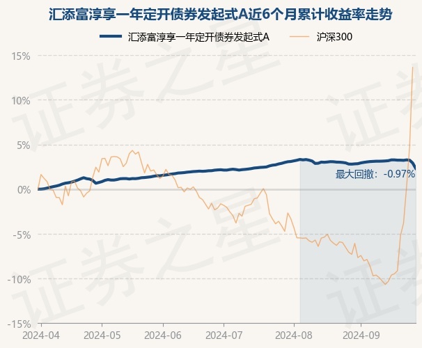 证券之星消息,9月30日,汇添富淳享一年定开债券发起式A最新单位净值为1.0341元,累计净值为1.0897元,较前一交易日下跌0.59%。历史数据显示该基金近1个月下跌0.51%,近3个月上涨0.15%,近6个月上涨2.32%,近1年上涨6.12%。该基金近6个月的累计收益率走势如下图: