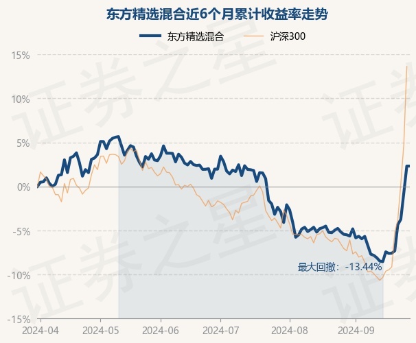 证券之星消息,9月30日,东方精选混合最新单位净值为1.7792元,累计净值为5.426元,较前一交易日上涨0.0%。历史数据显示该基金近1个月上涨15.62%,近3个月上涨7.93%,近6个月上涨10.05%,近1年上涨12.68%。该基金近6个月的累计收益率走势如下图: