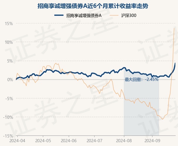 证券之星消息,9月30日,招商享诚增强债券A最新单位净值为1.1169元,累计净值为1.1169元,较前一交易日上涨1.54%。历史数据显示该基金近1个月上涨2.82%,近3个月上涨2.59%,近6个月上涨4.28%,近1年上涨6.71%。该基金近6个月的累计收益率走势如下图:
