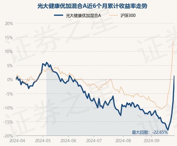 证券之星消息,9月30日,光大健康优加混合A最新单位净值为0.6967元,累计净值为0.6967元,较前一交易日上涨9.8%。历史数据显示该基金近1个月上涨14.19%,近3个月上涨9.51%,近6个月上涨1.16%,近1年下跌5.42%。该基金近6个月的累计收益率走势如下图: