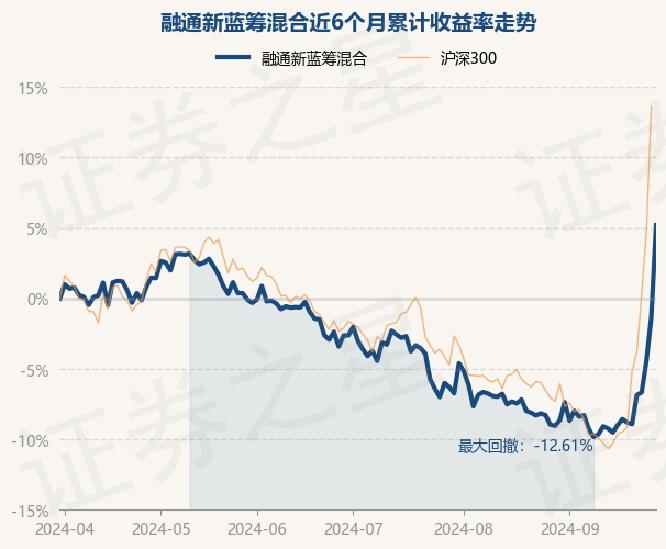 证券之星消息,9月30日,融通新蓝筹混合最新单位净值为0.8203元,累计净值为3.1353元,较前一交易日上涨6.62%。历史数据显示该基金近1个月上涨13.55%,近3个月上涨8.03%,近6个月上涨5.19%,近1年下跌2.41%。该基金近6个月的累计收益率走势如下图: