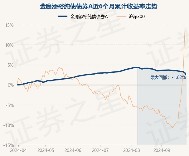 证券之星消息,9月30日,金鹰添裕纯债债券A最新单位净值为1.0523元,累计净值为1.2253元,较前一交易日下跌0.54%。历史数据显示该基金近1个月下跌1.09%,近3个月下跌0.45%,近6个月上涨2.44%,近1年上涨4.73%。该基金近6个月的累计收益率走势如下图: