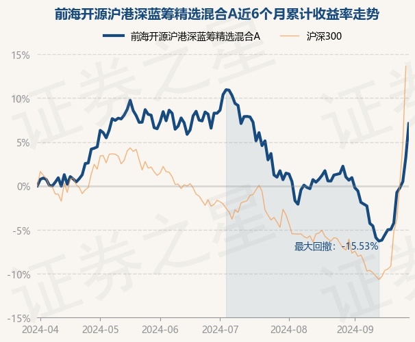证券之星消息,9月30日,前海开源沪港深蓝筹精选混合A最新单位净值为1.1204元,累计净值为1.2814元,较前一交易日上涨3.74%。历史数据显示该基金近1个月上涨6.1%,近3个月下跌1.09%,近6个月上涨7.1%,近1年上涨3.68%。该基金近6个月的累计收益率走势如下图: