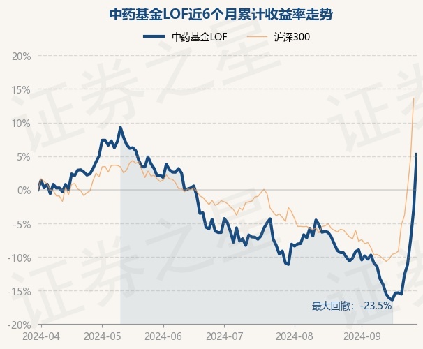 证券之星消息,9月30日,中药基金LOF最新单位净值为1.215元,累计净值为1.215元,较前一交易日上涨8.42%。历史数据显示该基金近1个月上涨15.63%,近3个月上涨12.44%,近6个月上涨5.28%,近1年下跌3.18%。该基金近6个月的累计收益率走势如下图:
