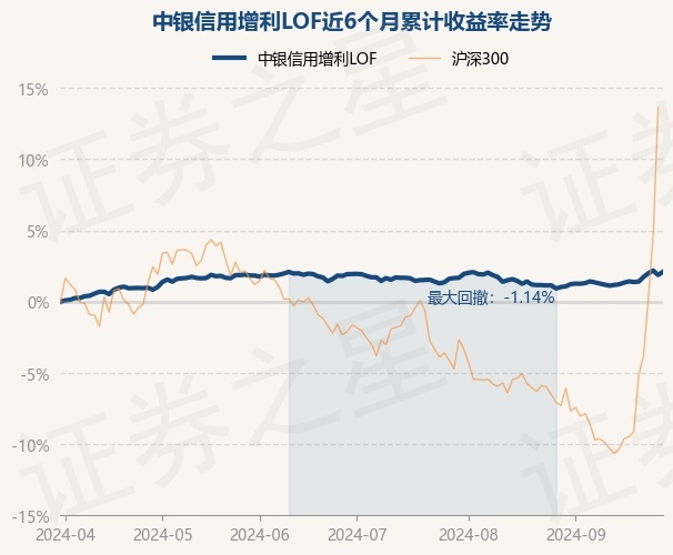 证券之星消息,9月30日,中银信用增利LOF最新单位净值为1.1034元,累计净值为1.7571元,较前一交易日上涨0.23%。历史数据显示该基金近1个月上涨0.86%,近3个月上涨0.15%,近6个月上涨2.1%,近1年上涨4.54%。该基金近6个月的累计收益率走势如下图: