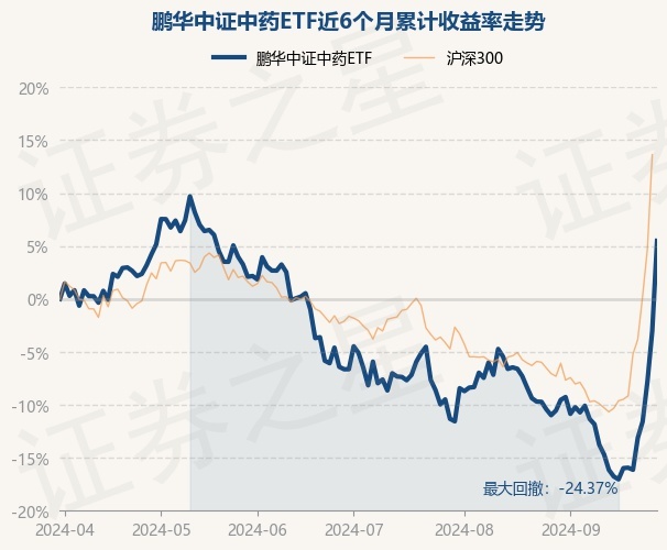 证券之星消息,9月30日,鹏华中证中药ETF最新单位净值为1.0761元,累计净值为1.0761元,较前一交易日上涨8.77%。历史数据显示该基金近1个月上涨16.26%,近3个月上涨12.99%,近6个月上涨5.49%,近1年下跌3.36%。该基金近6个月的累计收益率走势如下图: