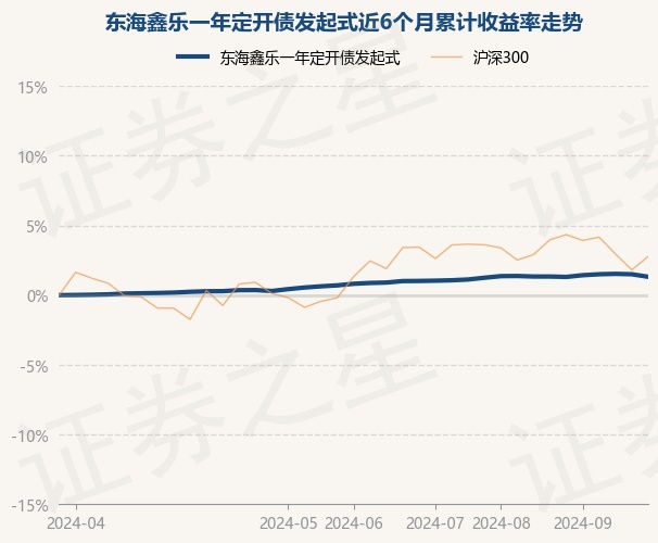 证券之星消息,9月30日,东海鑫乐一年定开债发起式最新单位净值为1.0541元,累计净值为1.0541元,较前一交易日下跌0.18%。历史数据显示该基金近1个月上涨0.01%,近3个月上涨0.29%,近6个月上涨1.32%,近1年上涨3.43%。该基金近6个月的累计收益率走势如下图:
