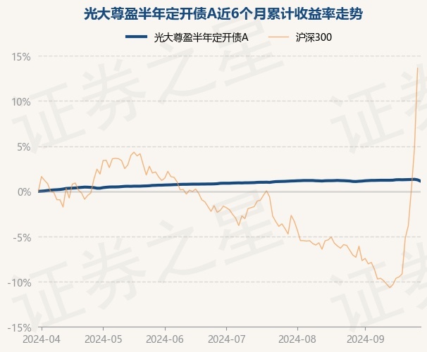 光大尊盈半年定开债A为债券型-混合一级基金,根据最新一期基金季报显示,该基金资产配置:无股票类资产,债券占净值比109.34%,现金占净值比0.54%。