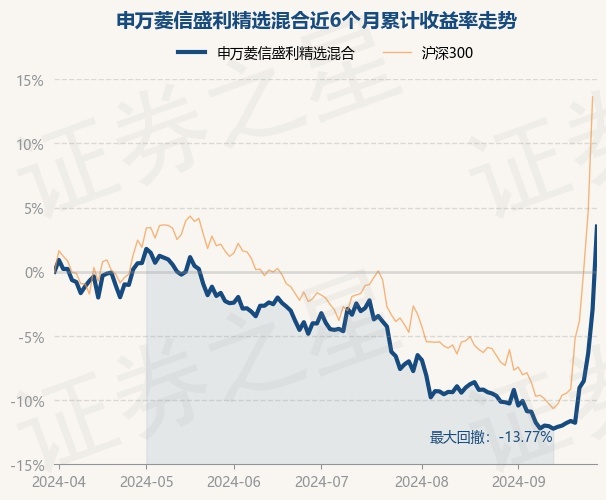 证券之星消息,9月30日,申万菱信盛利精选混合最新单位净值为0.5165元,累计净值为3.2505元,较前一交易日上涨6.65%。历史数据显示该基金近1个月上涨14.02%,近3个月上涨7.87%,近6个月上涨3.53%,近1年下跌4.01%。该基金近6个月的累计收益率走势如下图: