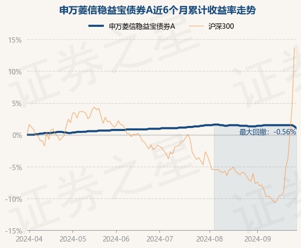 证券之星消息,9月30日,申万菱信稳益宝债券A最新单位净值为1.072元,累计净值为1.669元,较前一交易日下跌0.28%。历史数据显示该基金近1个月下跌0.28%,近3个月上涨0.09%,近6个月上涨1.04%,近1年上涨3.31%。该基金近6个月的累计收益率走势如下图: