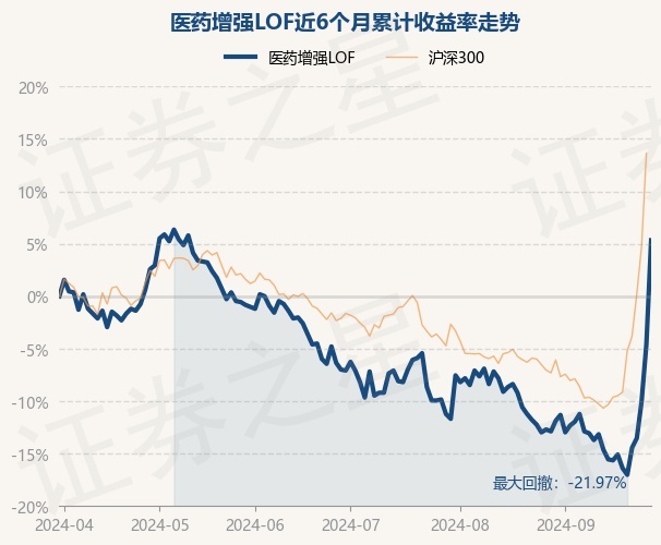 证券之星消息,9月30日,医药增强LOF最新单位净值为1.145元,累计净值为1.334元,较前一交易日上涨10.41%。历史数据显示该基金近1个月上涨18.78%,近3个月上涨13.37%,近6个月上涨5.34%,近1年下跌6.83%。该基金近6个月的累计收益率走势如下图: