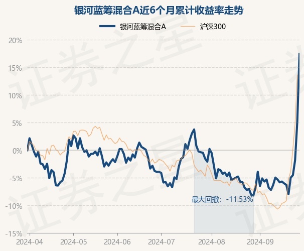证券之星消息,9月30日,银河蓝筹混合A最新单位净值为3.896元,累计净值为3.896元,较前一交易日上涨11.67%。历史数据显示该基金近1个月上涨22.17%,近3个月上涨22.21%,近6个月上涨17.42%,近1年上涨8.95%。该基金近6个月的累计收益率走势如下图: